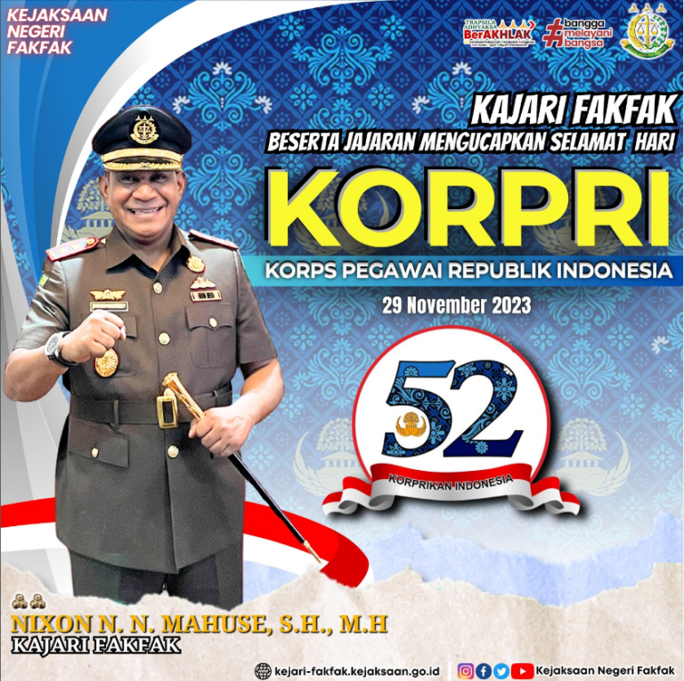 Kepala Kejaksaan Negeri Fakfak Nixon N.N. Mahuse, S.H., M.H. beserta jajaran mengucapkan Selamat Hari...