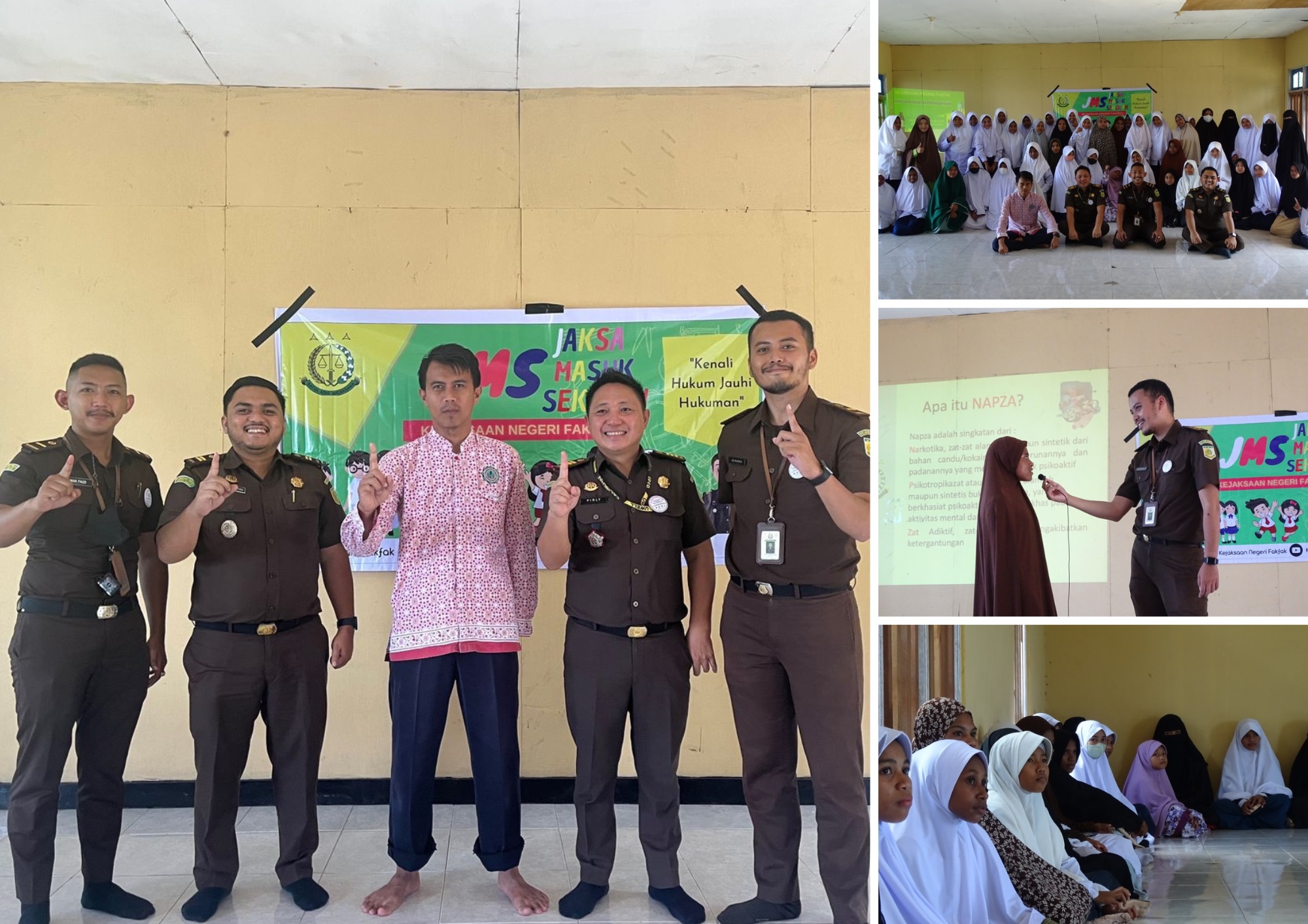 Pada hari Senin, 01 Agustus 2022 Kejaksaan Negeri Fakfak diwakili Kepala Seksi Intelijen beserta jajaran melaksanakan kegiatan Jaksa Masuk Sekolah (JMS) yang bertempat di Pondok Pesantren Hidayatullah Fakfak dalam rangka sosialisasi hukum bertema “Kenali Hukum, Jauhi Hukuman”.