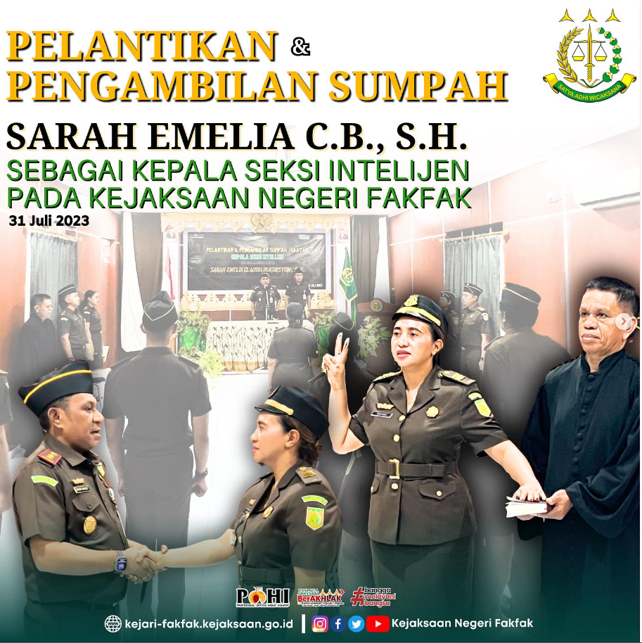 Pada hari Senin tanggal 31 Juli 2023, Kepala Kejaksaan Negeri Fakfak Nixon Nikolaus Nilla Mahuse, S.H., M.H memimpin langsung Pelantikan dan Pengambilan Sumpah Sarah Emelia Claudia Bukorsyom, S.H. sebagai Kepala Seksi Intelijen pada Kejaksaan Negeri Fakfak.