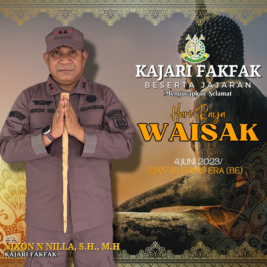 Kajari Fakfak beserta seluruh jajaran mengucapkan selamat Hari Raya Waisak 4 Juni 2023/2567 Buddhis Era (BE).
